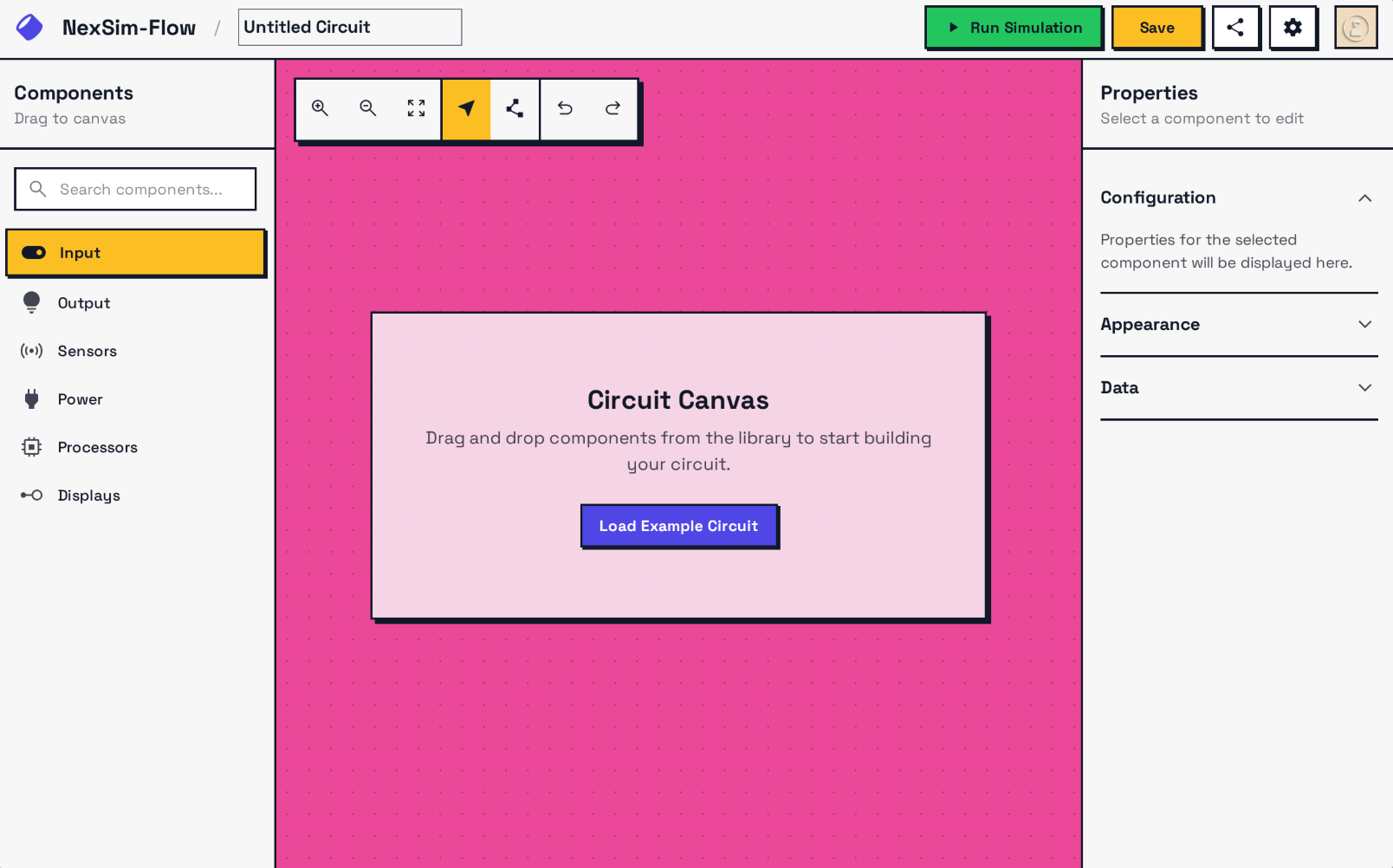 NexSim Flow Editor(软件端):电路编辑器 + MCU 仿真 + 云端 IDE