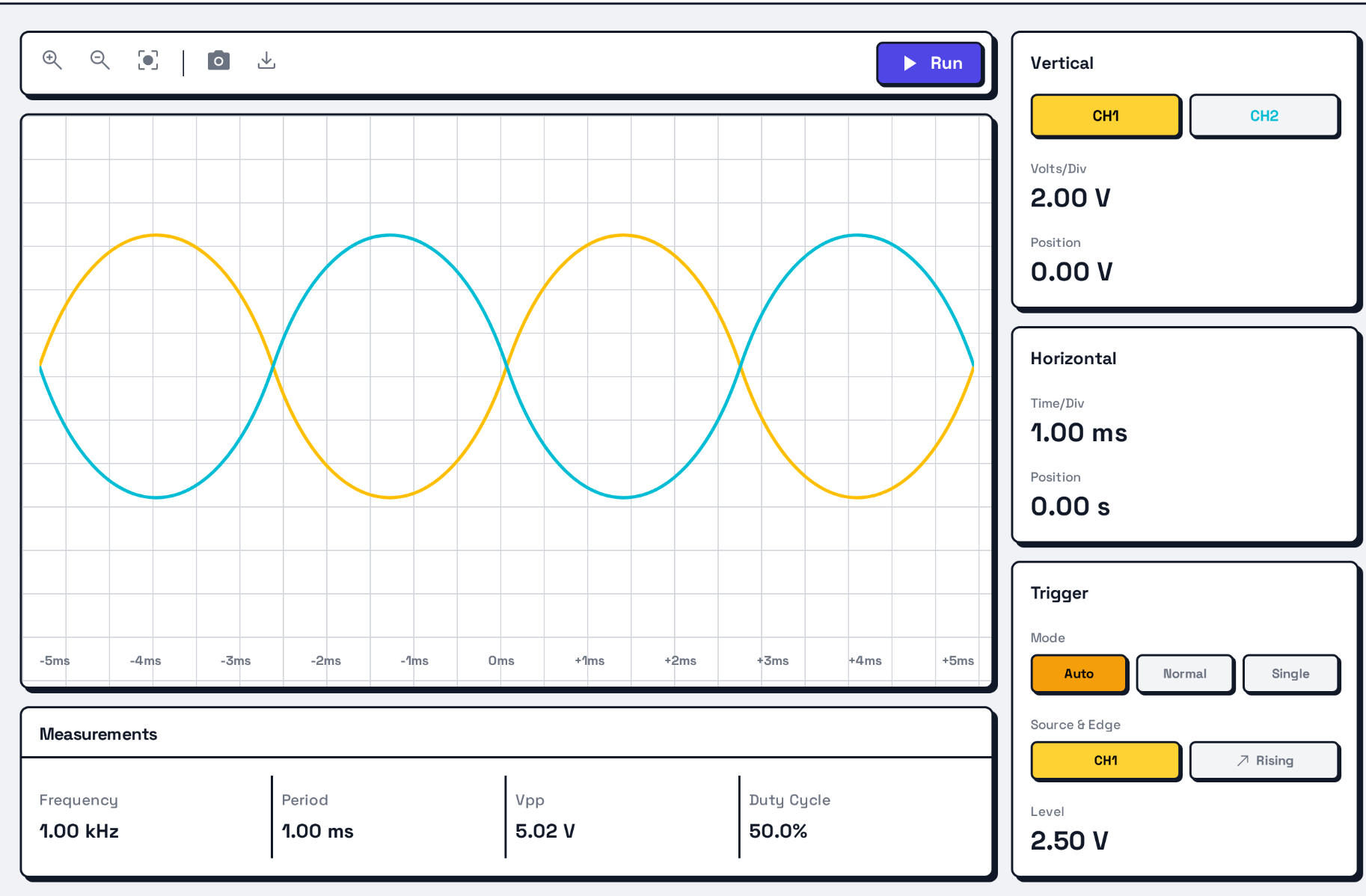 用于查看模拟电压波形、时基、触发和多通道行为。